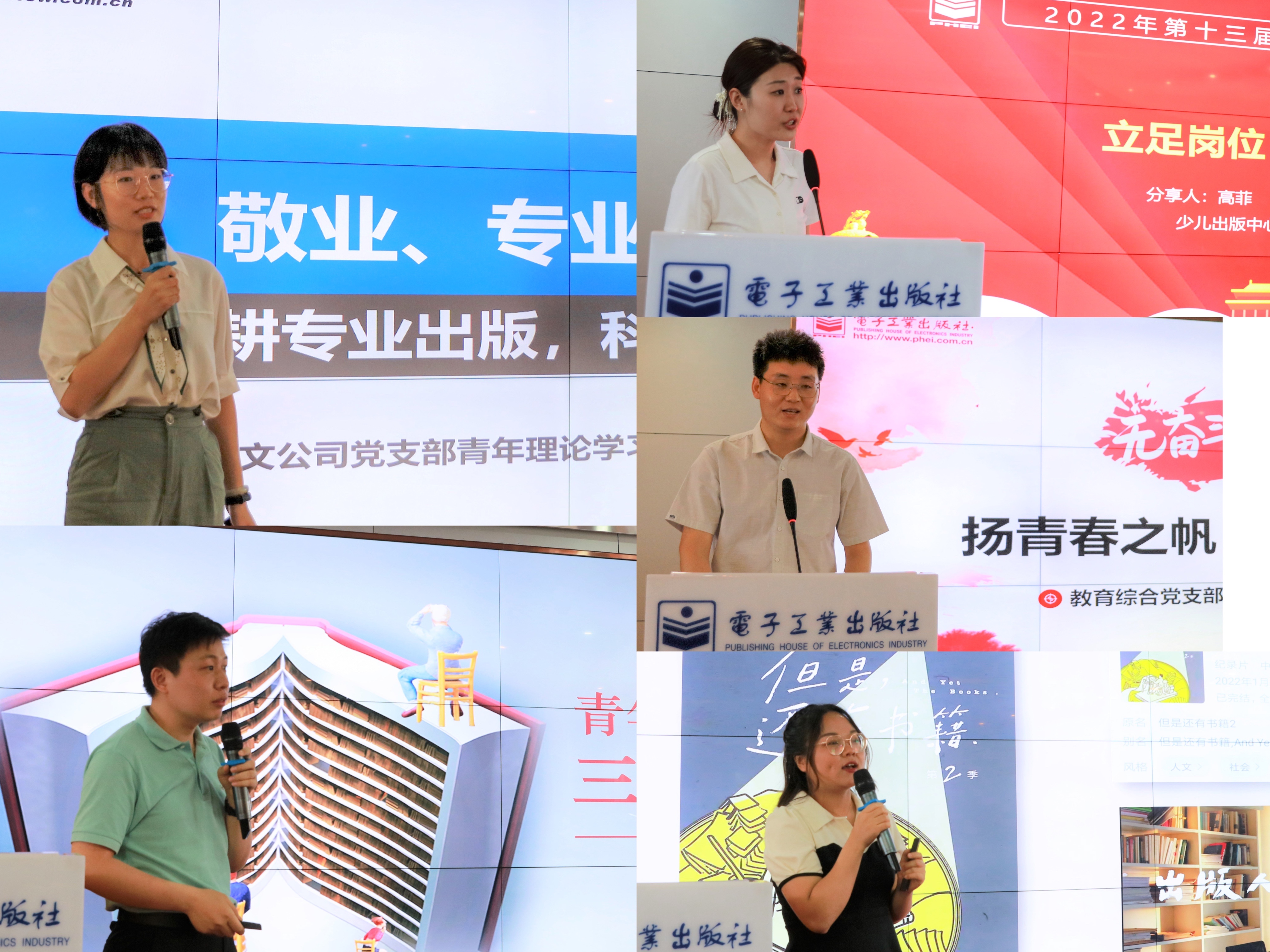 2022年6月15日下午,电子工业出版社有限公司以“汇聚青年力量,传承奋斗担当”为主题,举办了第十三届“华信杯”青年论坛暨演讲比赛。党委书记、总经理王传臣,党委委员、副总经理、总编辑刘九如,党委副书记、工会主席胡丽华,党委委员、副总经理宋猋、赵晨阳,纪委书记徐斌,党委委员沈艳波出席了活动。活动采用线上线下相结合的方式,各党支部书记、各职能部门主要负责人、社团委委员参加了现场活动,全社干部职工200余人线上参加。