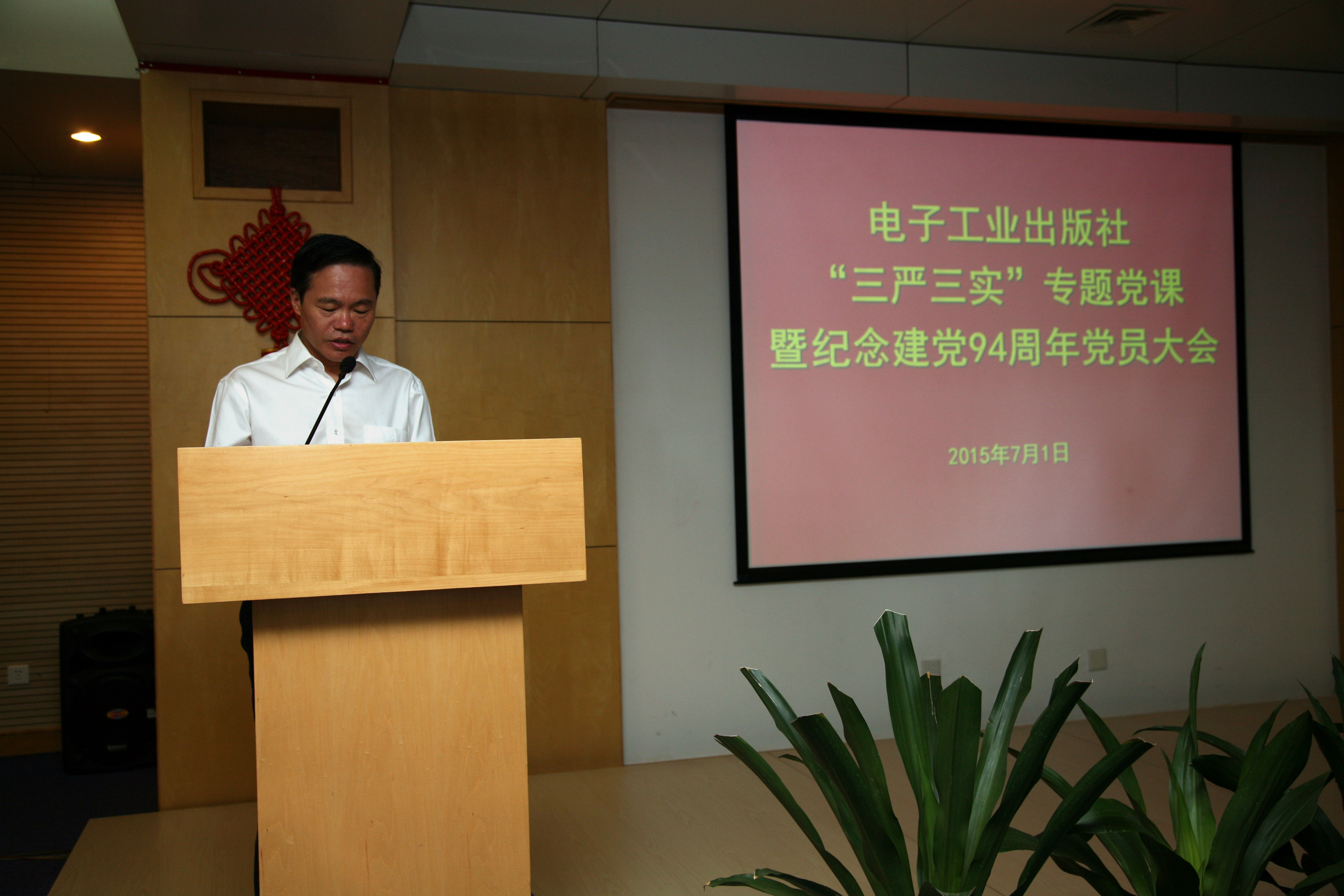 2015年7月1日上午,在建党94周年到来之际,我社召开了“三严三实”专题党课暨纪念建党94周年大会。总编辑、副社长刘九如为党员做了“三严三实”专题党课报告,并启动我社“三严三实”专题教育,全社约两百名党员干部参加学习。副社长朱师君出席会议,社党委副书记、纪委书记胡丽华主持大会。